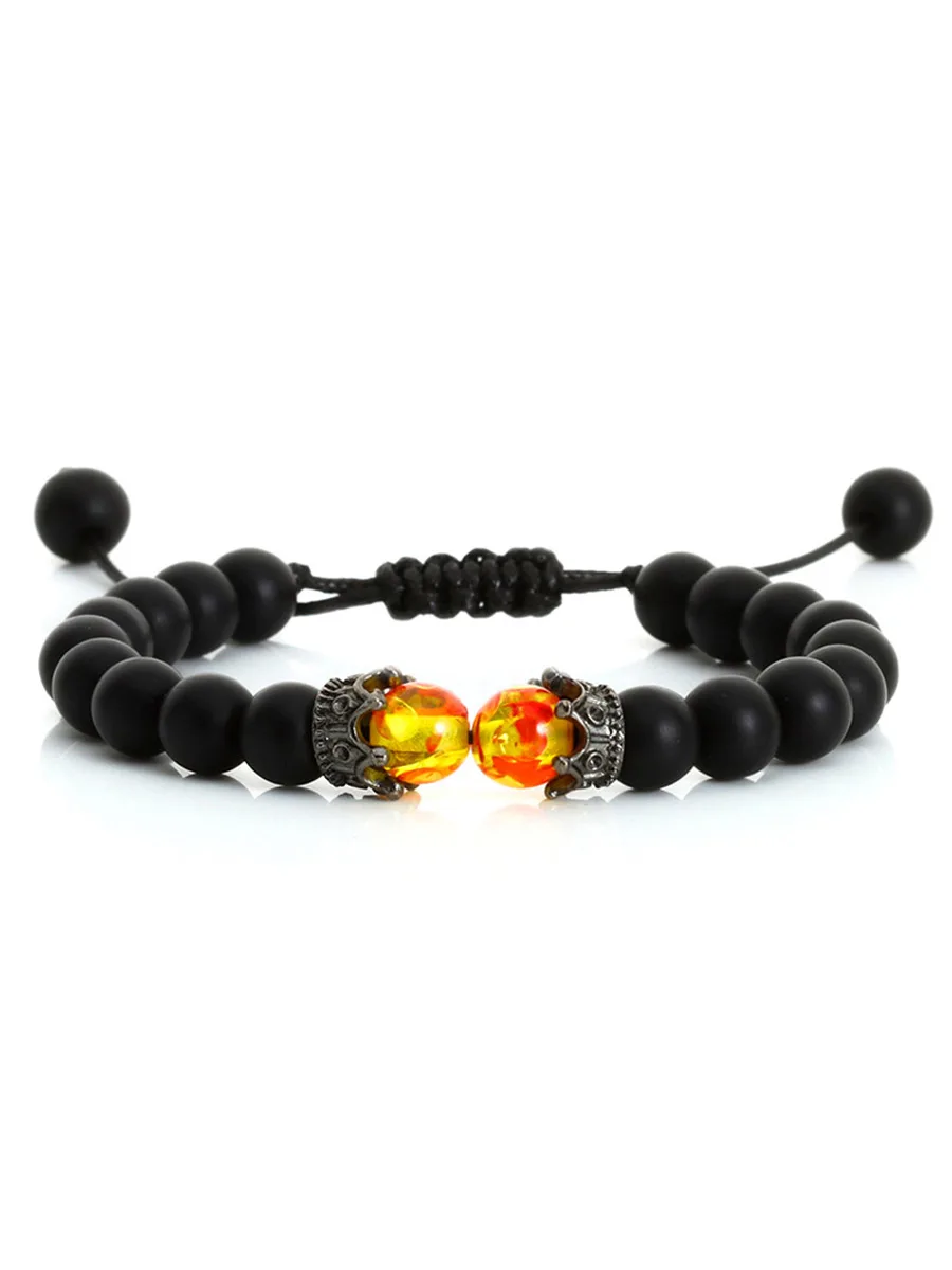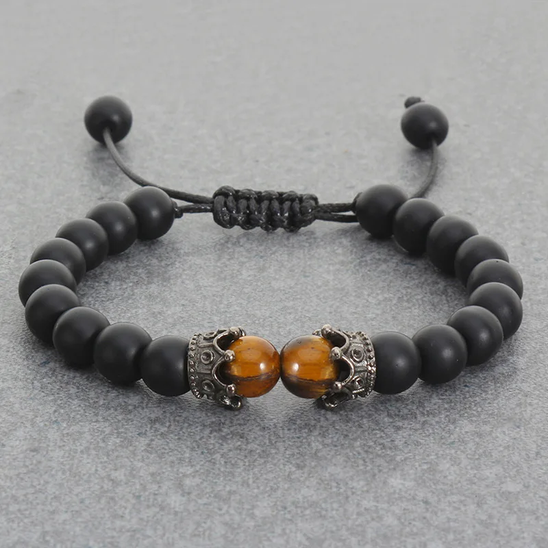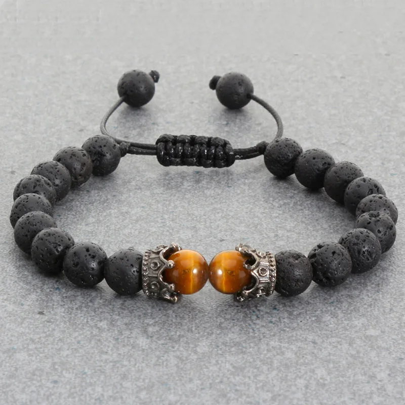 Name: Men Women Natural Lava Stone Bracelet 8mm Beads Crown Braid Bracelet Couple Beaded Bracelet Best Gift for Friends